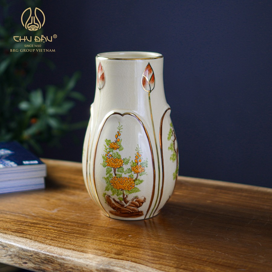 Bình hoa sen gốm Chu Đậu phiên bản vẽ vàng kim cao cấp, men màu mang lại màu sắc tươi mới cho không gian gia đình.