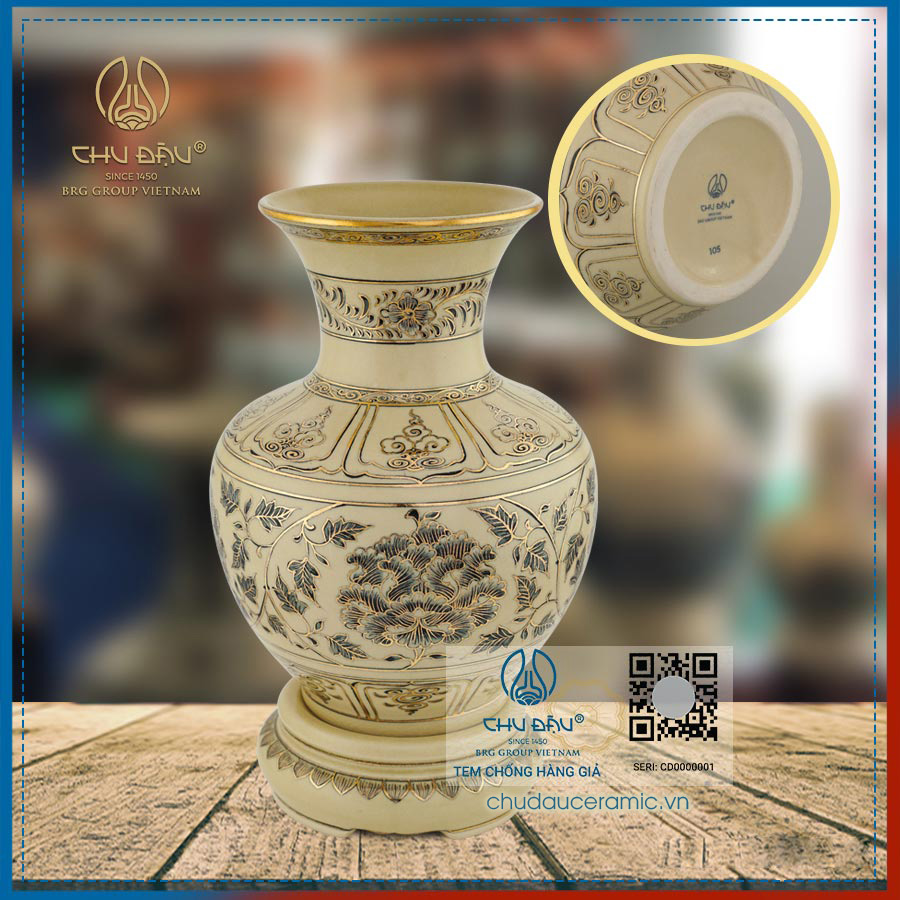 Bên cạnh sản phẩm bình trường phúc với men trắng ngà cùng với họa tiết màu lam truyền thống, Gốm Chu Đậu còn cung cấp sản phẩm bình trường phúc vẽ vàng kim – một kiệt tác về dòng gốm kết hợp truyền thống và hiện đại.