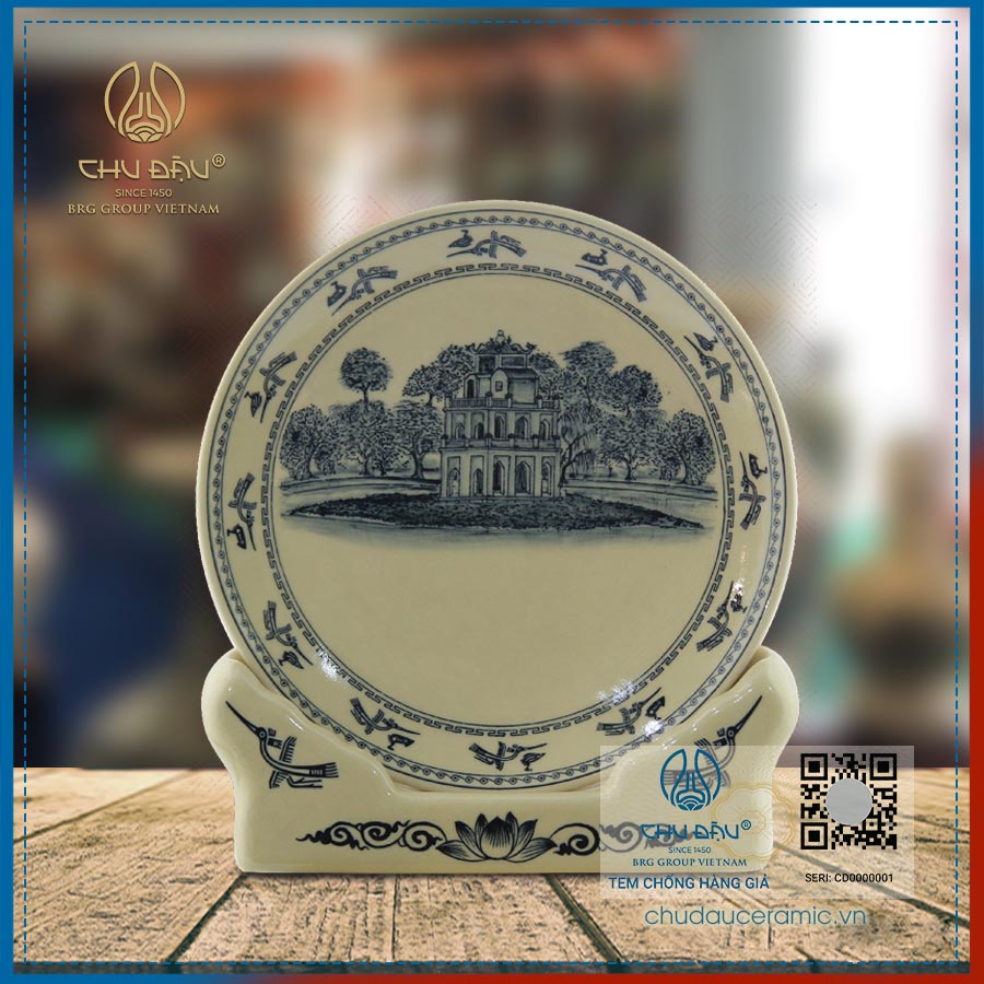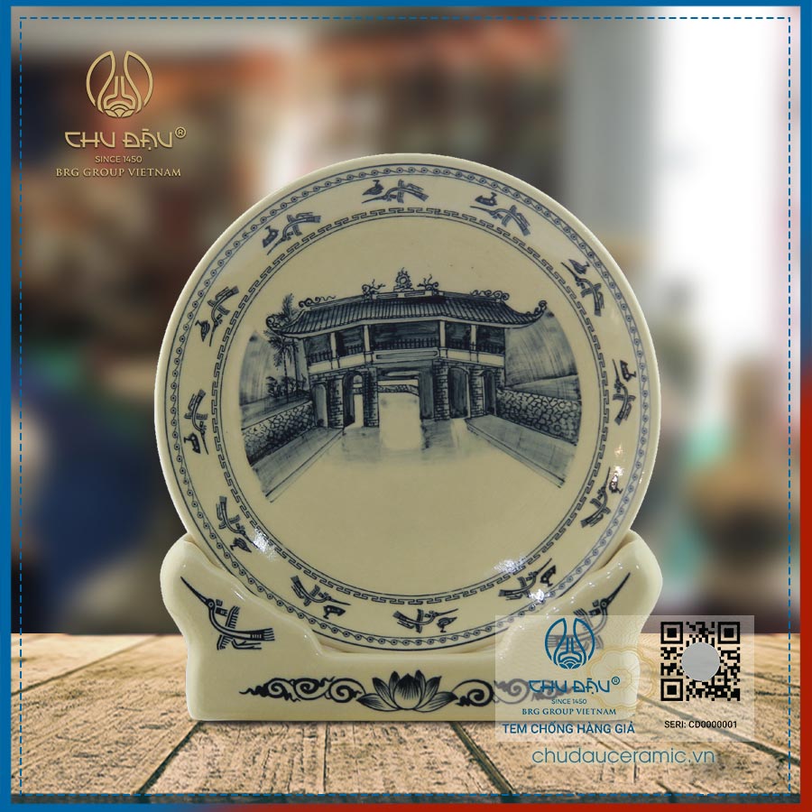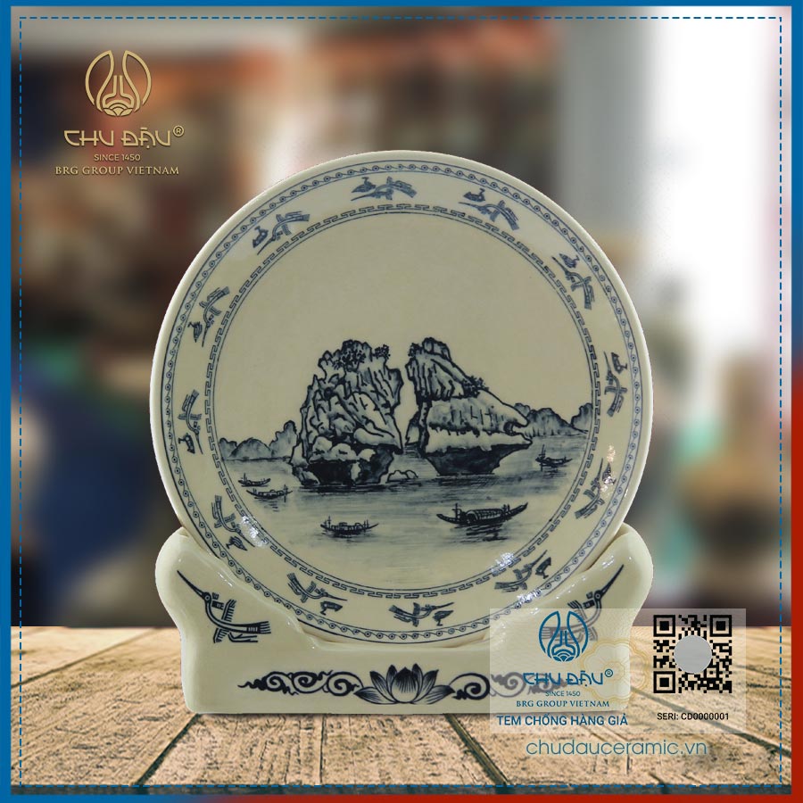 Sản phẩm được chế tác tinh xảo bởi bàn tay tài hoa của các nghệ nhân Gốm Chu Đậu .Những cảnh vật được vẽ trong lòng đĩa thường là những di tích lịch sử, danh lam, thắng cảnh của nước ta như : vịnh Hạ Long, Chùa Một cột, Khuê văn các, Hồ Gươm....